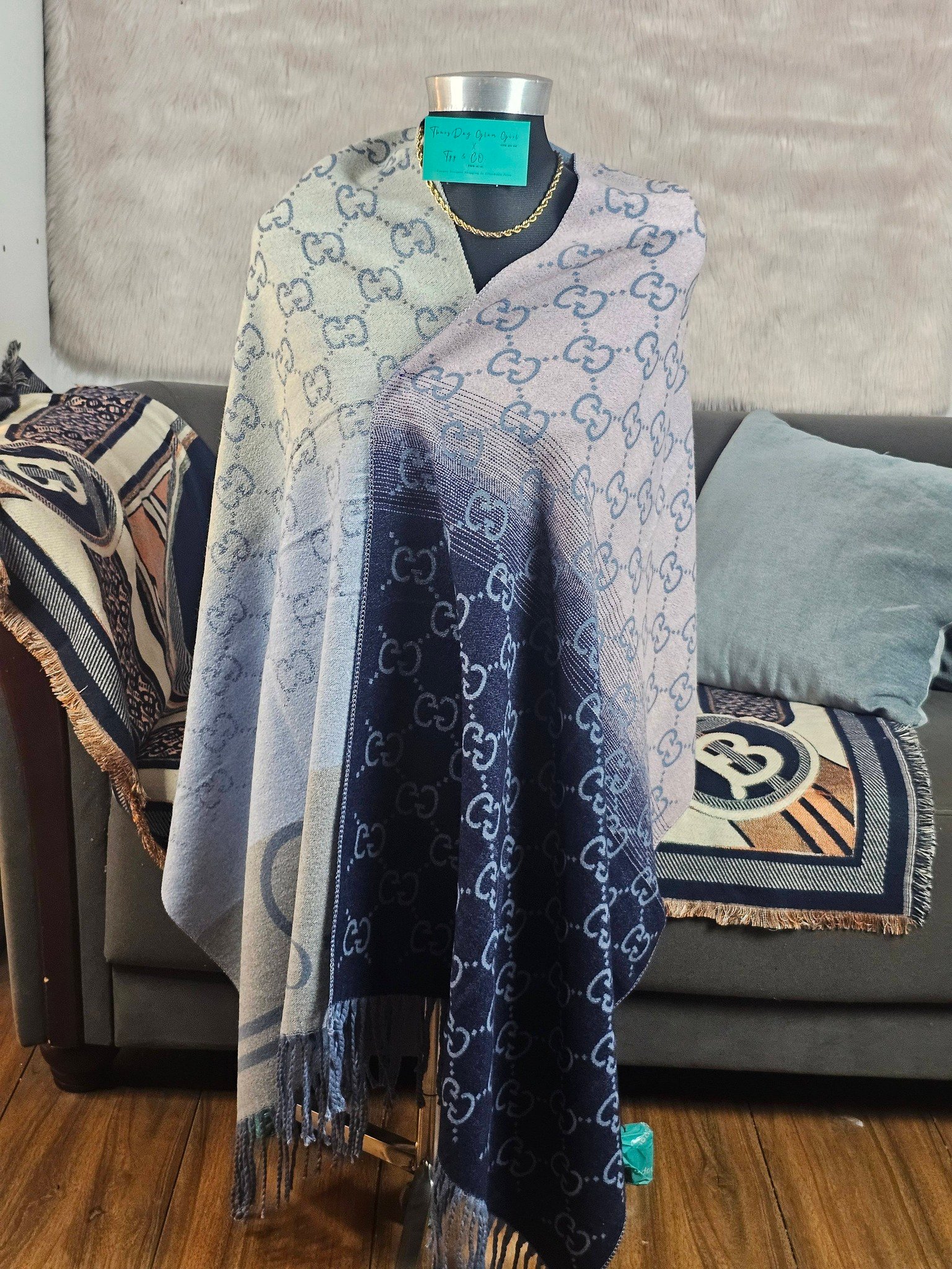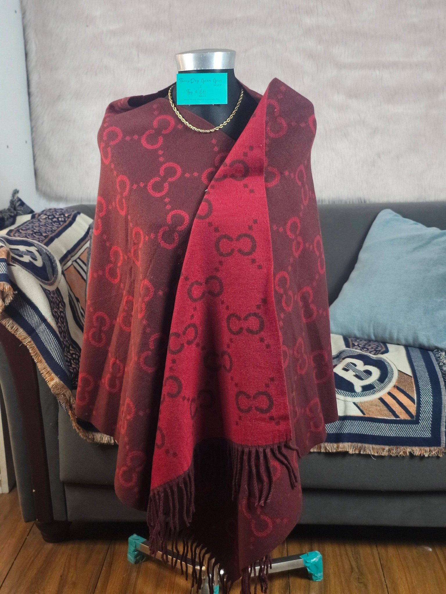 This shawl is a fashionable ,warm and elegant accessory ,perfect for wearing in winter or coldweather.